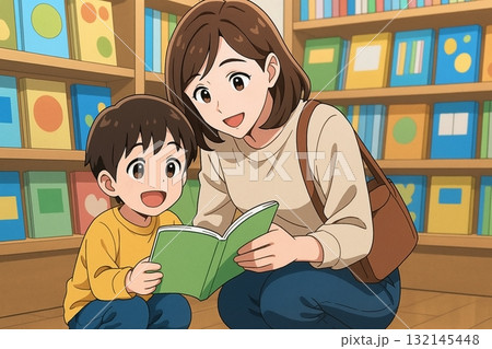 図書館で大きな本を抱える少女|知的好奇心と物語を感じるアニメ風イラスト