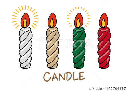 シンプルで優しい色合いのクリスマスキャンドルのイラスト