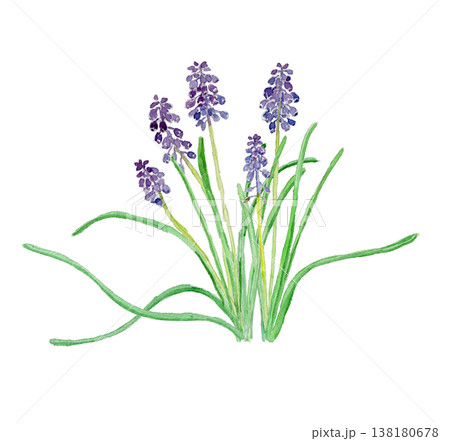 ムスカリ Muscari neglectum の水彩イラスト