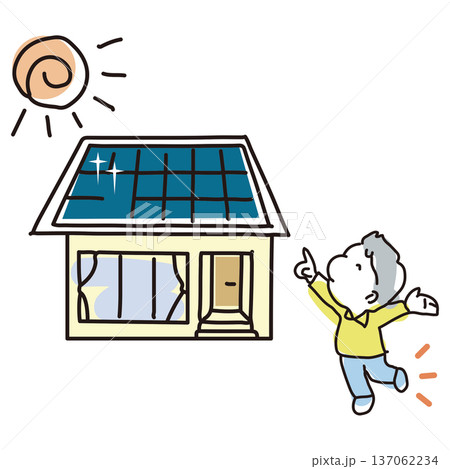 自宅の屋根にソーラーパネルが設置されて喜ぶ主人