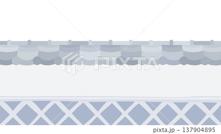 かわいいなまこ壁と瓦屋根の塀の背景イラスト_16:9