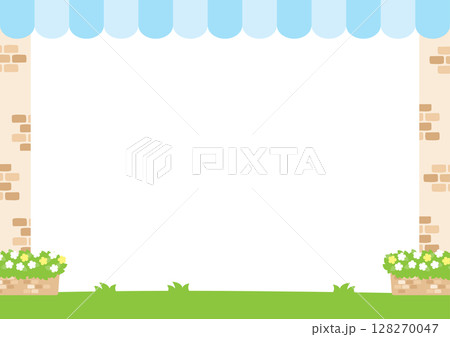 カフェのフレーム、水色のテント屋根