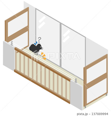アイソメトリックなベランダの柵に鳥よけのワイヤーが設置されているイメージイラスト素材