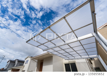 カーポートのある住宅外観と空