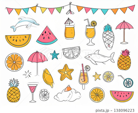 夏のビーチアイテムに囲まれたフレーム背景とコピースペース