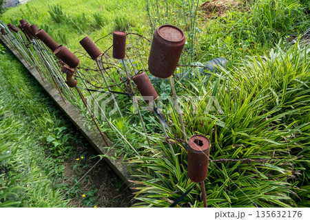 3月、和泉リサイクル環境公園の空き缶で作った鳥よけ