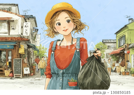 美優シリーズ:美優が地域の人たちと商店街の清掃活動に参加するシーン
