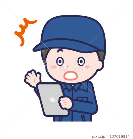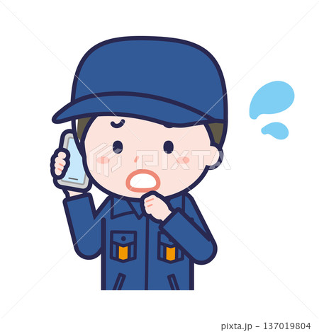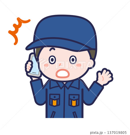 発信機を押し電話をかける男性作業員