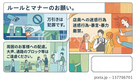 店舗向け 迷惑行為・カスハラ・万引き防止ポスターテンプレート ルール案内