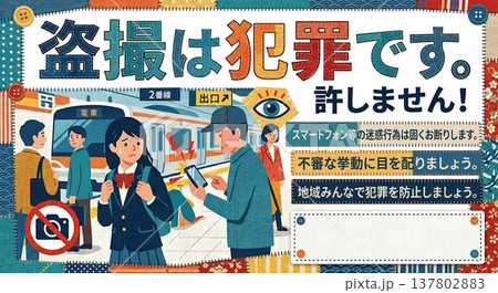 盗撮は犯罪です 鉄道駅ホームの防犯啓発ポスターテンプレート 警察通報 迷惑行為防止