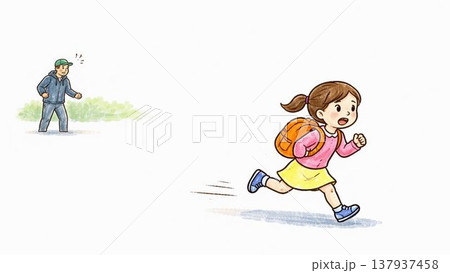 すぐ逃げる子ども 防犯教育イラスト 危険から離れる 行動イメージ
