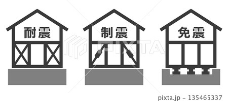 地震に強い耐震補強された住宅と免振や制震の技術のイラスト