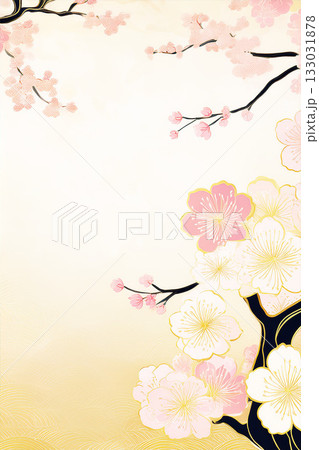 水彩と金箔風の和風パターン。モダンで上品な和風背景。
