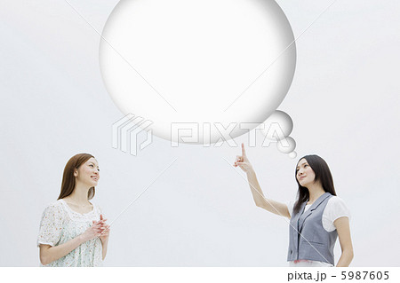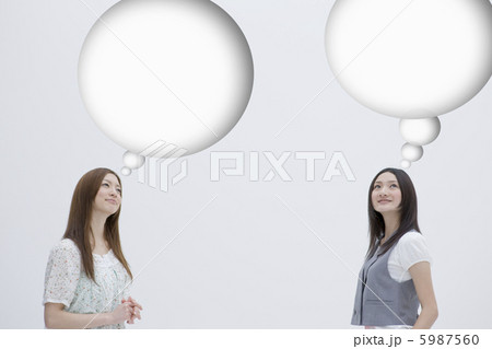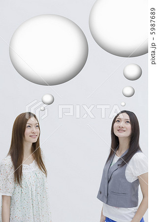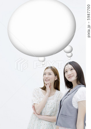 何かを思い浮かべる2人の20代女性