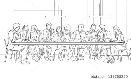 イラスト素材: スーツ姿の男女を描いたシンプルな線画ベクター