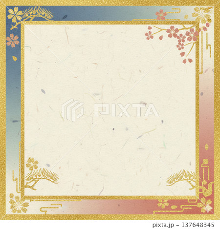 和柄アイコンが並ぶ華やかなフレームデザイン背景