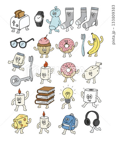 ゆるい擬人化キャラクターのアイコン素材集vol.6|食べ物・生活用品・小物など