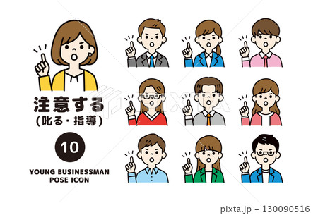 怖い顔で注意する、複数の若い会社員の上半身アイコンセット_ベクター_カラー