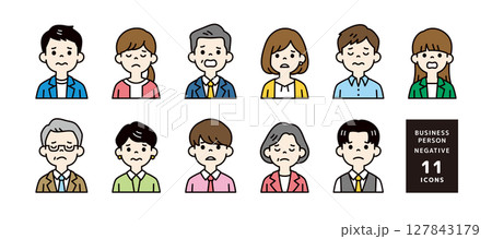 オフィスで働く、困り顔のビジネスパーソンのアバターアイコン素材セット_ベクター_カラー