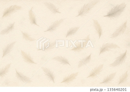 羽毛・羽根シリーズ:和風水彩・淡い生成り色の羽根パターン背景