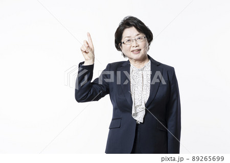 道路に立ち指さすビジネスウーマン