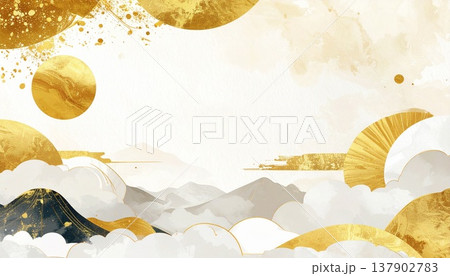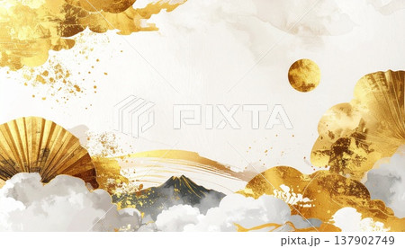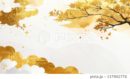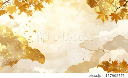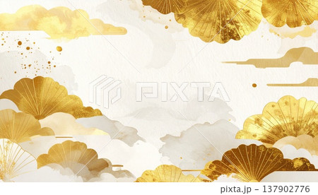 金色の和柄と雲模様があしらわれた華やかな背景デザイン