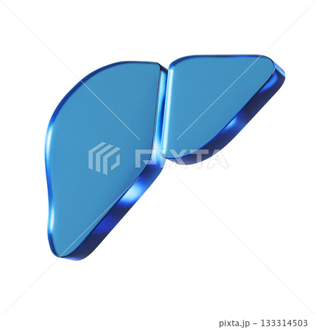 健康な肝臓のフラットなアイコンの3Dイラスト。透明感のある青いグラスモーフィズムなマーク