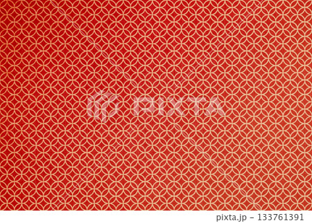 赤色の布生地に金色の七宝模様がある背景画像
