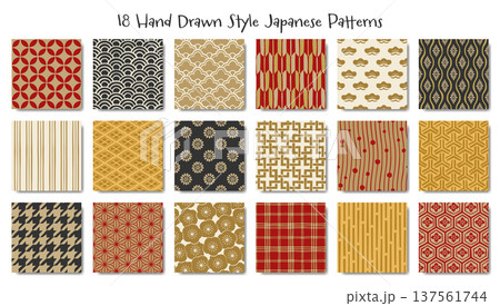 日本のベーシックな和柄模様のセット 伝統的な和柄パターン