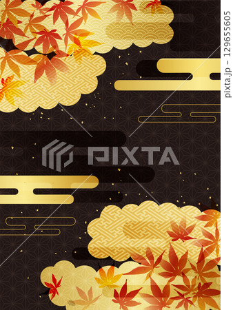 紅葉と和柄金箔背景