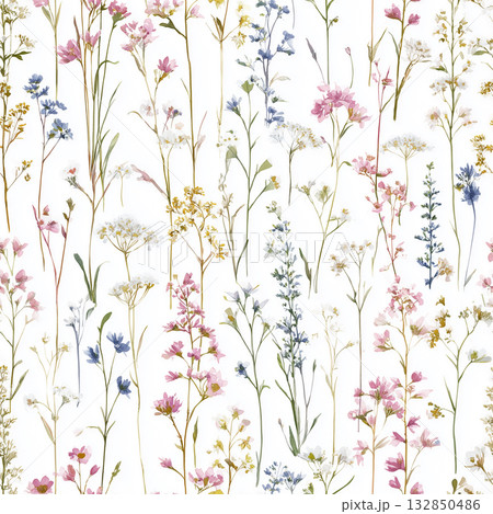 繊細な水彩の花畑のシームレスパターン