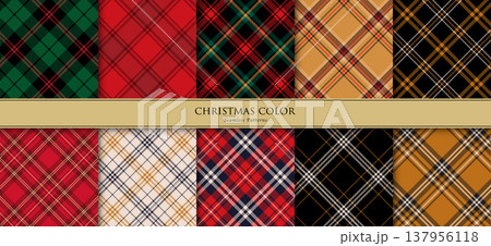 シームレスなタータンチェックパターンセット カラフルなクリスマスチェック柄のセット