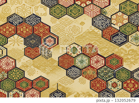 和風亀甲文様 六角形の伝統パターン背景