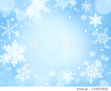 美しく輝く雪の結晶のイラスト壁紙(青背景)