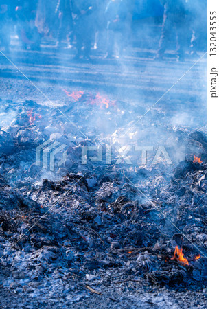 【正月・初詣風景】神社の焚き火・お焚き上げ