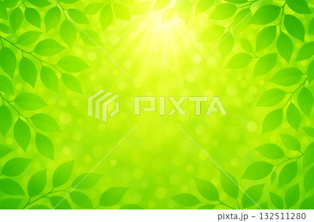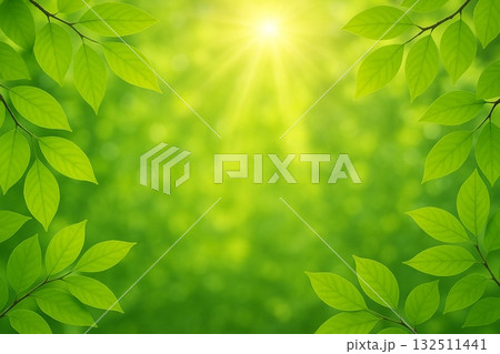 綺麗な青空と新緑の背景素材 新緑フレーム 枠 背景イメージ バックグラウンド 朝カラー