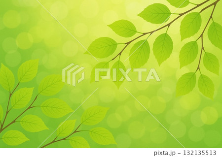 淡い緑の水彩画風の葉っぱ。背景素材。