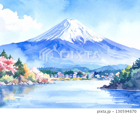 着物を纏った白人女性と日本庭園を水彩画風に描いた美しいイラスト素材|和モダンなテイストで文化・観光