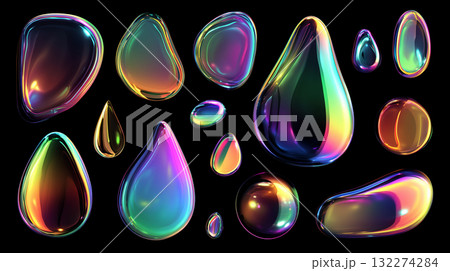 カラフルで虹色に輝く美しいウォータードロップコレクション