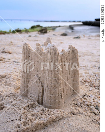 宮古島の浜を飾る砂の城 (沖縄県宮古島市)