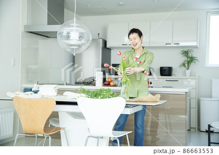 花を飾る女性