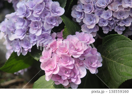 Purple hydrangea flowers bloom beautifully in Jhuzihu of Yangmingshan National Park, Taiwan.