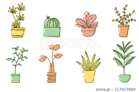 手描きの観葉植物セット かわいい植物のイラスト素材