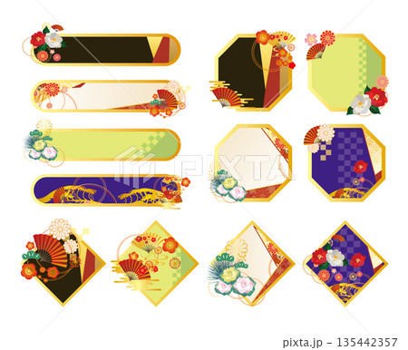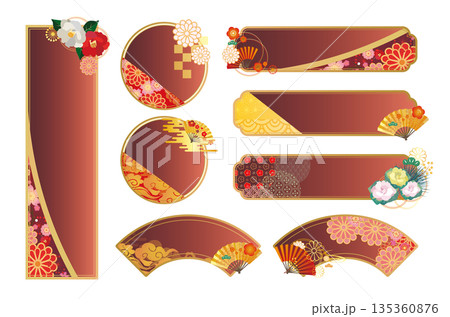 春節・旧正月の新年のお祝いバナー、背景セット(ワイド、横長)