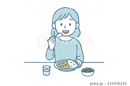 食事をする女性のイラスト素材