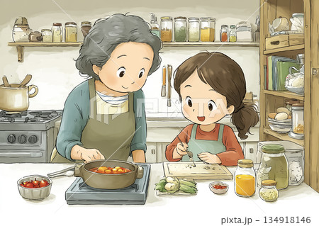 祖母と孫が一緒に料理する家庭の時間|世代をつなぐあたたかな食育シーン