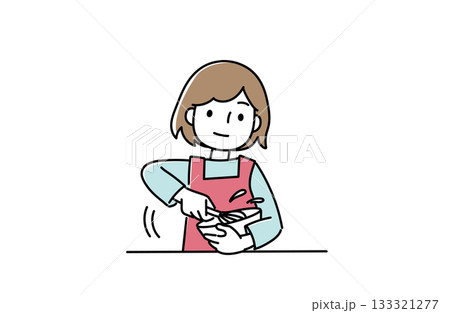 シンプル イラスト 笑顔で料理をするミドルエイジの女性 人物