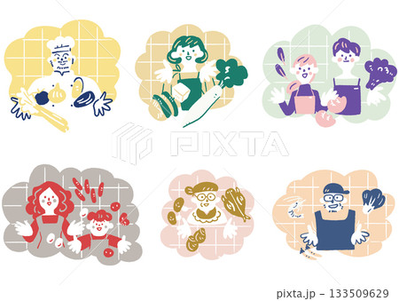 フライパンで調理する様々な人々 クッキングを楽しむ人々シリーズ