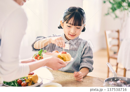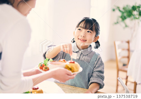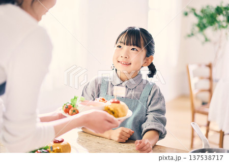 食事の手伝いをする小学生の女の子