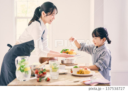 食事の準備をする親子